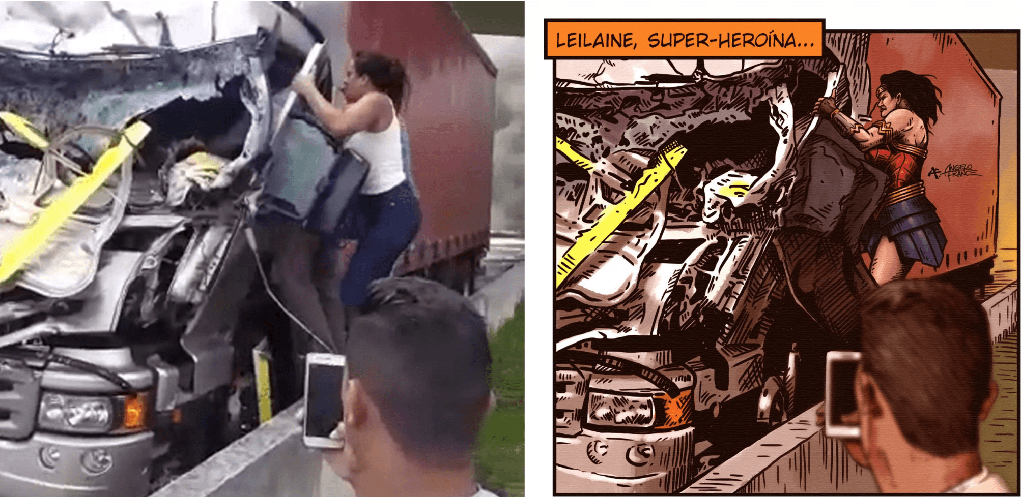 Imagem da mulher salvando motorista vira HQ e bomba na internet