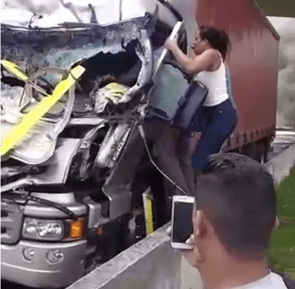 Leiliane Rafael da Silva salvando o motorista do caminhão que se chocou com o helicóptero onde estava Ricardo Boechat.