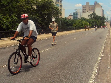 Aos fins de semana, o Minhocão, via expressa que liga a zona oeste ao centro de SP, fica fechada para a circulação de carros. Por isso, é uma ótima oportunidade para pegar sua bike e dar um rolê por toda a sua extensão. É comum encontrar pessoas correndo, caminhando ou andando de bicicleta e skate – um programão BEM paulistano. Algumas vezes acontecem até apresentações teatrais na via.