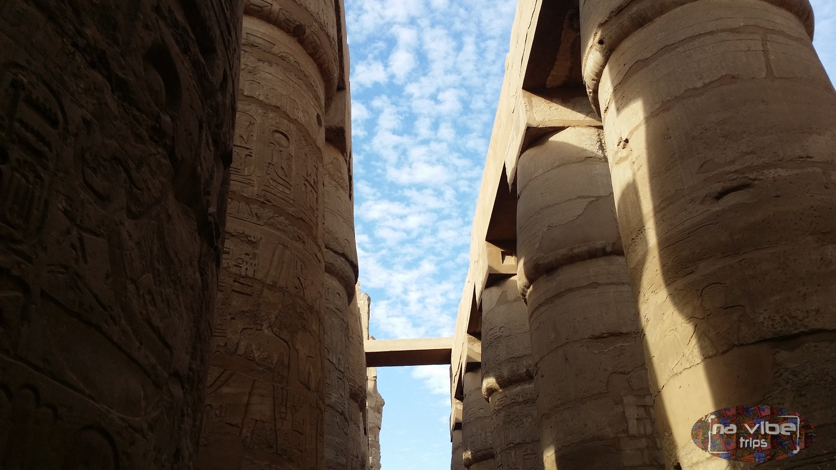 Os Templos de Karnak são um enorme complexo belíssimo, com mais de 100 colunas gigantescas, situado em Luxor – East Bank. O local, segundo nosso guia, era um santuário dedicado a Amon, Mut e Khonshu. Ali aconteciam sacrifícios para o Deus Amon-Rá. Trata-se do maior templo do Egito, porém este seria uma mescla de vários templos em um só, o que explica os mais de mil anos de construções e reconstruções e que terminaram por volta de 360 a.C. O templo foi descoberto somente com escavações que ocorreram em meados do século 18. A entrada custa 80 LE.