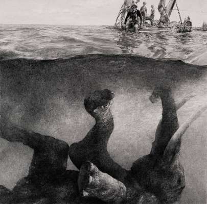 O artista Ethan Murrow, dos E.U.A, cria trabalhos que misturam realidade e fantasia em grafite sobre papel. Em escalas grandes e influenciado pelo cinema e fotografia, a obra do artista é carregada de detalhes, técnica e narrativa.