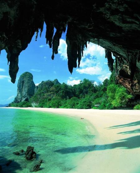 Phra Nang, cercada por imensas formações rochosas e águas verdes, também parece uma imensa piscina construída naturalmente em torno de uma região tomada pela areia branca. A localização privilegiada, na Província de Krabi, dona de algumas das paisagens mais belas da Tailândia, faz com que este pedacinho do litoral tailandês esteja entre os preferidos dos turistas.
