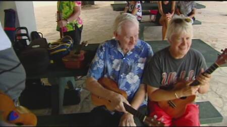 Por 20 anos, um grupo de aposentados tem se reunido em Honolulu, no Havaí, para cantar e tocar ukulele, um instrumento de cordas.