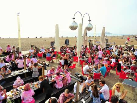 O rei teve que se mudar para Brighton por indicação de um médico. Pronto, juntou a fome com a vontade de comer…o rei parafinou o cabelo, virou surfista e abriu a primeira loja de açaí da região (brincadeirinha, gente!!!)….mas ele fez uma palácio inimaginável por esses lados e dava grandes festas. Inclusive se apaixonou e casou com uma moradora da cidade, mas o casamento teve que ser anulado mais tarde –não é assim, Georjão, rei não pode sair casando com qualquer uma.Depois do palácio começamos a rodar pela cidade….fomos em direção a praia.