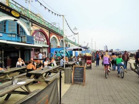 Terminamos o nosso passeio com uma imagem que representa bem o clima da cidade – Kissing Coopers, do Banksy (adoooro esse cara!). Digo isso, porque Brigthon é um lugar onde você encontra diferentes expressões artísticas, é o lugar que recebe bem a comunidade GLS, os hippies e também os ciganos….enfim, é a cidade mais friendly da Inglaterra e isso você sente no ar assim que desce do trem.