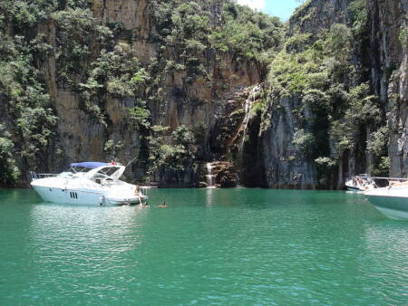 Se Minas Gerais não tem praia, o Estado não deixa nada a desejar quando o quesito é água cristalina. A 284 km de Belo Horizonte e a 500 km de São Paulo encontra-se uma região de águas verdes, cachoeiras e cânions, a cidade de Capitólio, às margens do lago de Furnas. Não à toa alguns chamam o local de “mar mineiro”. Ao todo, o lago abrange 34 cidades.