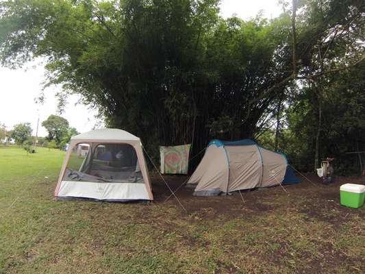 Chegamos ao camping e a recepção não podia ter sido melhor. O Douglas, que é proprietário, é extremamente atencioso com cada pessoa que chega e nos levou para conhecer a estrutura do local. Lugar escolhido, arrumamos o acampamento e partimos para a aventura!