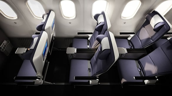 A Lufthansa, por exemplo, oferece quase 18 centímetros a mais para esticar as pernas. Cada fileira tem dois assentos a menos que na classe econômica tradicional e cada passageiro tem seu próprio apoio de braço.