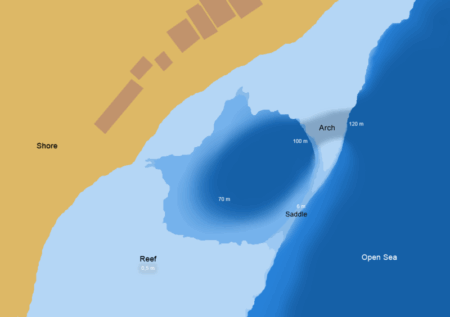 A leste de Sinai, a poucos quilômetros de Dahab, encontra-se o quinto blue hole desta lista, com 130 metros de profundidade.