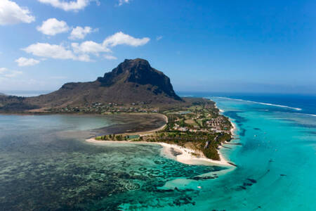 Na região de Le Morne, uma montanha rochosa que se projeta para o mar, reserva um espetáculo surreal: uma cachoeira que, vista de cima, parece estar dentro do mar.