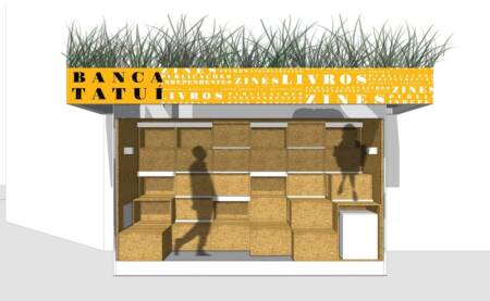A parte interna ganhou uma nova cara, convidativa e original, criada pelos arquitetos Mario Figueroa e Letícia Tamisari, do Figueroa.arq: uma série de módulos de OSB, derivado da madeira, armazena os livros e também organiza o espaço. E a identidade visual , presente nas paredes, na testeira e em outros elementos da banca, foi desenvolvida pelo escritório de design Casa Rex e remete ao universo impresso.