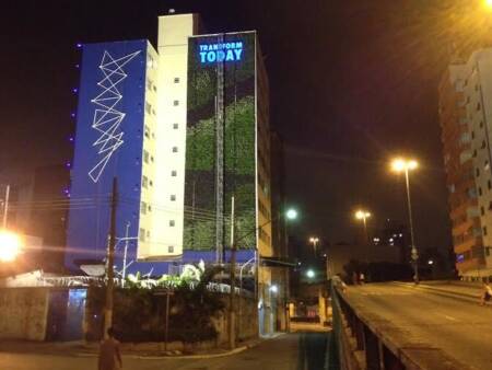 Conheça jardim instalado em um prédio no minhocão, no Largo Padre Pericles. As fotos são do primeiro jardim vertical empena cega – prédios sem janelas – do Brasil.