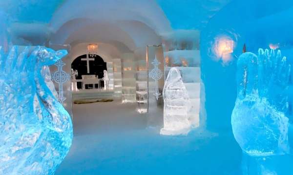 Algumas pessoas, inclusive, se encantam tanto com essa impressionante construção que decidem celebrar um dos melhores dias da sua vida nesse paraíso gelado, sua cerimônia de casamento! A capela de gelo, que faz parte do hotel, é um ambiente intimista com uma acústica especial e decorada com belíssimas esculturas de gelo, e perfeita para um casamento emocionante.