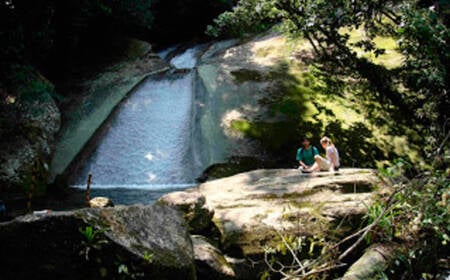 No sopé da Serra do Mar se inicia o segundo trecho, em meio à mata primária e nativa da região. Um caminho estreito, de terreno irregular, passando pelo vale do rio Cabuçu, que leva os mochileiros a um lugar lindo, o ponto forte da trilha: a Cachoeira do Cabuçu, com cerca de 10 metros de queda e uma incrível piscina natural. Tire a mochila das costas e aproveite essa paisagem incrível!