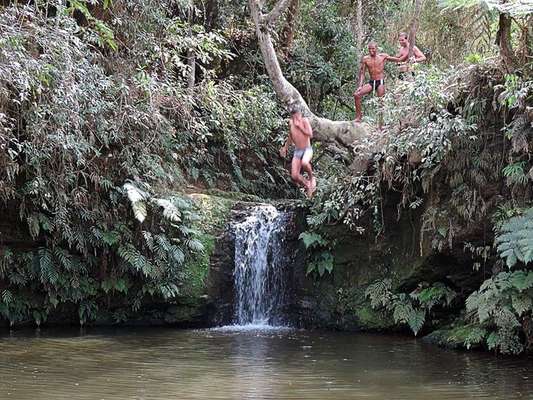 A sinalização para os principais pontos turísticos é boa, o que torna fácil a visitação. Passamos a tarde na Cachoeira Véu das Noivas, no Paraíso e na cachoeira do Flávio.