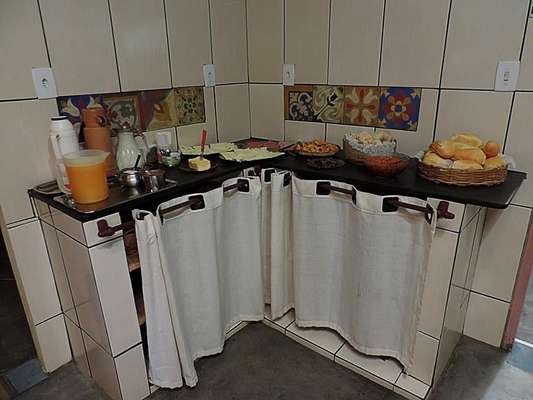 Amanhecemos e fomos tomar café da manhã no restaurante do camping. O café da manhã era ótimo! Sempre com bolos fresquinhos feitos na fazenda, pão de queijo, leite quentinho, café, entre outras guloseimas.