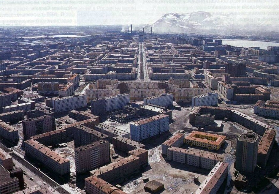 Nessa cidade outrora bela, com uma extraordinária arquitetura antiga, localizada no norte do território de Krasnoiarsk (a 2.800 km de Moscou), as superfícies se cobrem de neve negra e um cheiro de enxofre paira no ar. Essa área é utilizada para a produção de metais pesados – cobre níquel, chumbo, selênio e zinco, e a cidade e seus habitantes estão contaminados pelos resíduos dessa produção.