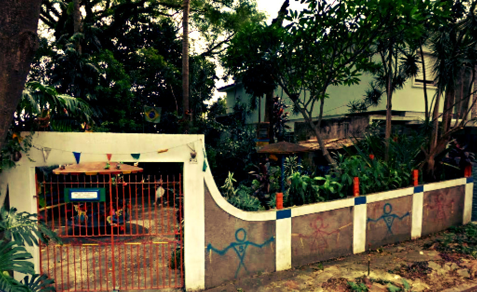 Ali, num terreno de 300 m², tem de tudo que uma criança possa gostar: castelo, carrossel, casa na árvore, gangorra e balanço. Tem também uma “trilha na floresta” com mais de 60 espécies de plantas, uma galinha e uma lata de lixo que agradece o seu lixo!