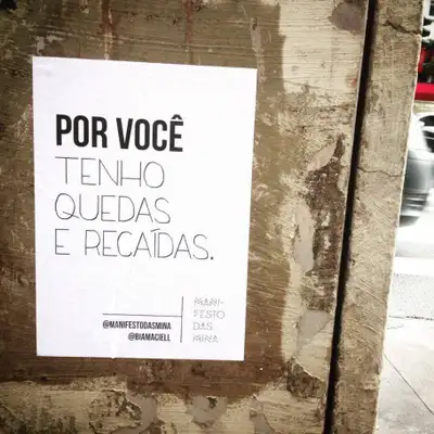 “Inicialmente, o ‘Manifesto das Mina’ tinha como intuito lidar com meus próprios sentimentos, pois escrever sempre me ajudou. Sentia que a cada vez que colava e deixava aquela frase em um muro, parecia que um pedaço meu ficava ali na rua”, conta a designer em entrevista ao Catraca Livre.