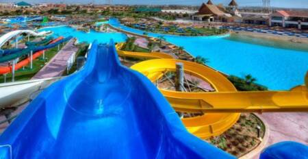 O resort possui o maior parque aquático de Hurghada, com 35 toboáguas impressionantes e 14 piscinas externas.
