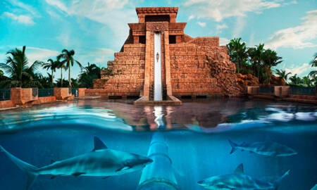 Resort nas Bahamas tem toboágua que passa por piscina cheia de tubarões