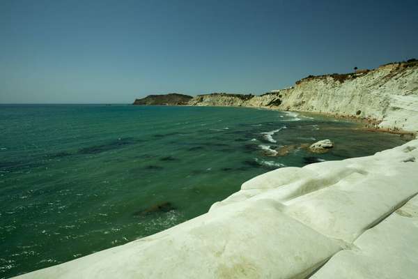 Aproveite a noite em Porto Empedocle e a manhã para visitar a Scala Dei Tutti, que fica a 18 km de Agrigento, uma falésia de rocha sedimentar que, em contraste com o Mar Mediterrâneo, torna o cenário único. Local bonito, diferente e interessante!