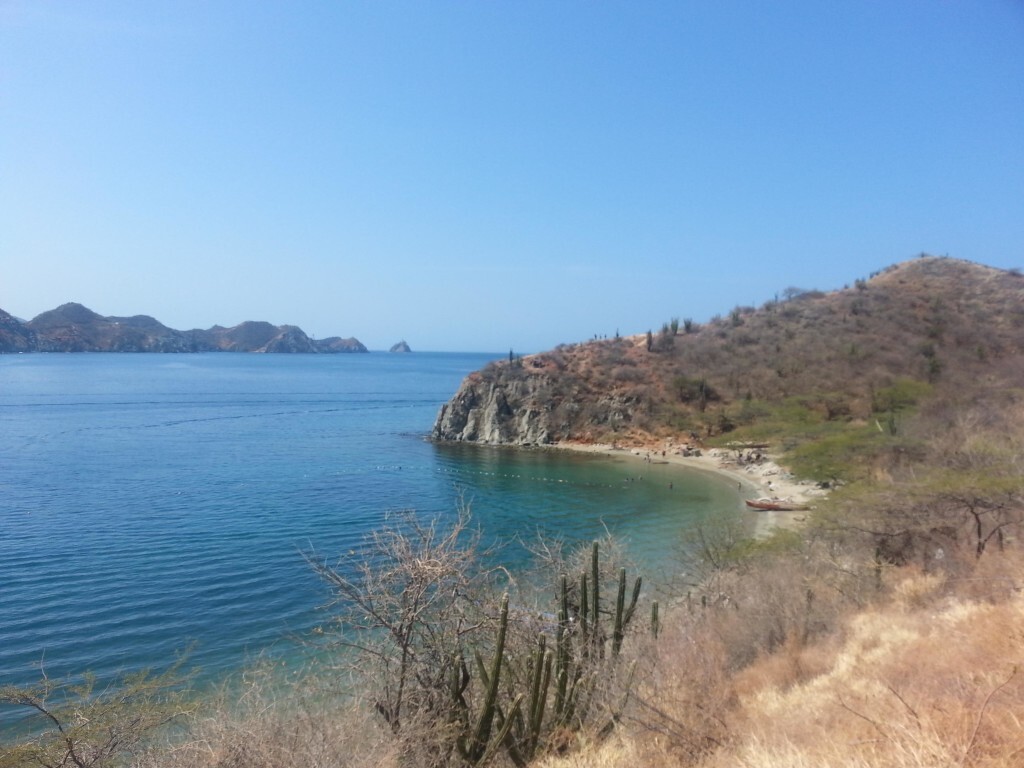 Na ponta direita da praia central de Taganga, começa uma trilha pelos morros da região. O calor e a paisagem seca (não há árvores nas montanhas) dificultam a caminhada.