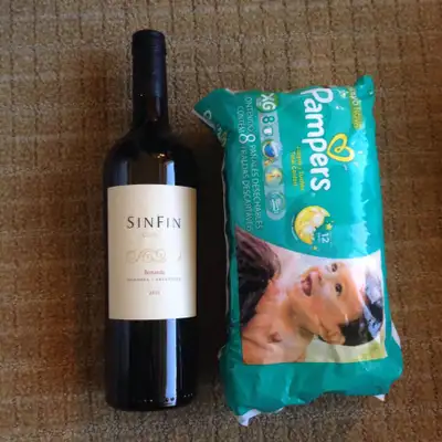 As fraldas são baratas, fáceis de encontrar e ajudam a amortecer o impacto no vidro. Além disso, se a garrafa quebrar, a fralda absorve boa parte do líquido e evita que a mala inteira fique cheia de bebida.