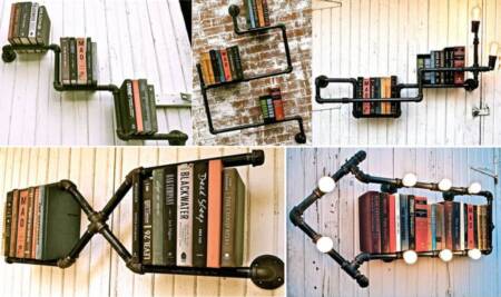 Stella Bleu, designer americana, cria prateleiras originais reutilizando tubos industriais descartados. Abaixo algumas opções que podem ser inspiração para criar outras estantes feitas de maneira similar a descrita acima.