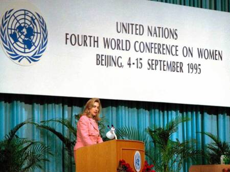 Em 1995, o pronunciamento de Hillary Clinton na Quarta Conferência Mundial sobre as Mulheres, nas Nações Unidas, em Pequim, criticou as violações de direitos humanos encontradas na política de controle de natalidade conhecida como “um filho por casal”.