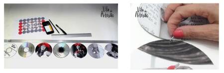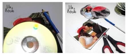 Coloque o CD em cima da foto, faça a marcação circular com um lápis e recorte com cuidado.