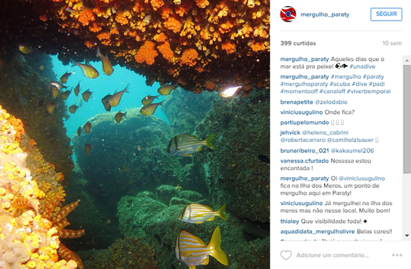 Andrea diz que conseguiram, com o perfil no Facebook, criar a maior comunidade de mergulho do Brasil: “Criamos o perfil no Face com o nome Mergulho Paraty e não com o nome da empresa. Assim quando alguém busca se informar sobre mergulho em Paraty e joga as palavras no Google, cai na nossa página”.