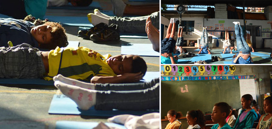 Antes das aulas de português e matemática 134 alunos fazem um conjunto de exercícios físicos e de respiração e praticam 20 minutos de meditação (fecham os olhos e metalizam palavras ou som).