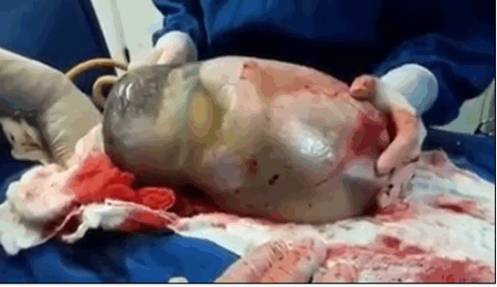 Momento raro e emocionante: bebê nasce dentro da própria bolsa amniótica, um fenômeno que acontece em pouquíssimos partos.