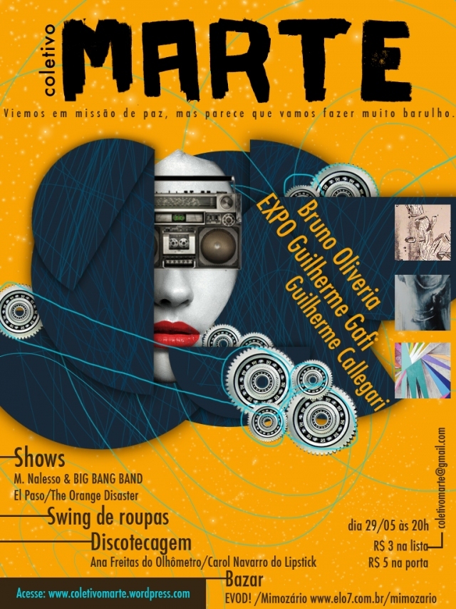 O Coletivo Marte do ABC Paulista reúne diversas linguagens artísticas no domingo, dia 29 de junho, em festa itinerante. Exposições, shows, bazares e workshops são algumas das atrações programadas para o dia.