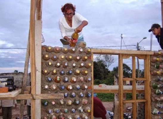 Boliviana desenvolve casa de garrafas PET
