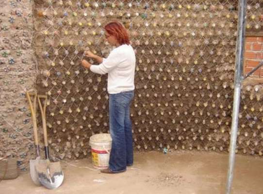 Para levantar uma “casa de garrafas”, são necessárias cerca de 36 mil garrafa plásticas de dois litros, além de vidro, cimento, cal, areia, cola, sedimentos, resíduos orgânicos, aros e glicose. Segundo a criadora do projeto, com o auxílio de pelo menos 10 voluntários, é possível construir o “eco-domicílio” em até 20 dias.