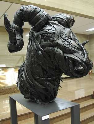 Mas o escultor alemão Mirko Siakkou-Flodin conseguiu ousar ainda mais e viu nos pneus, metais e garrafas que encontrou no lixo uma oportunidade para fazer essas esculturas espetaculares. Confira: