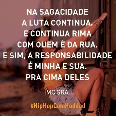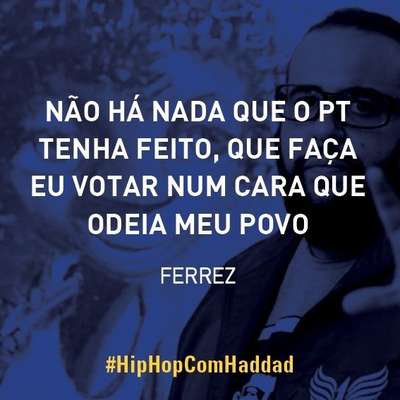 “Entendemos que, apesar de todas as falhas, os governos do PT promoveram políticas públicas que beneficiaram a população mais pobre e defendemos a continuidade, o fortalecimento e o avanço dessas políticas. Em defesa da democracia, da liberdade e do nosso direito de existir, nos manifestamos e escolhemos trabalhar as hashtags #HipHopResiste #HipHopComHaddad e #RapPelaDemocracia”, diz a nota.