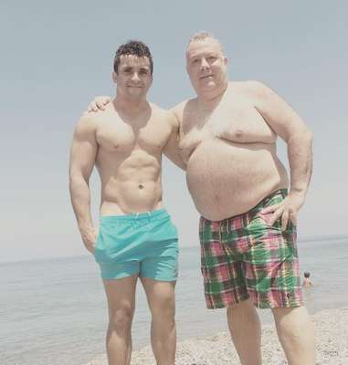 Sam Stanley, 23, e Laurence Hicks, 50, formam um casal lindo e que não se encaixa nos padrões. Sam foi o primeiro jogador de rugby da liga inglesa a sair do armário e logo começou a namorar Laurence, um homem gordo e quase 30 anos mais velho.