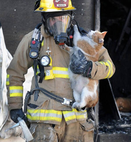 Essas imagens, selecionadas pelo site Razões para acreditar, mostram gestos heróicos e gentis de bombeiros com os gastos, clicados em diferentes tempos e lugares.