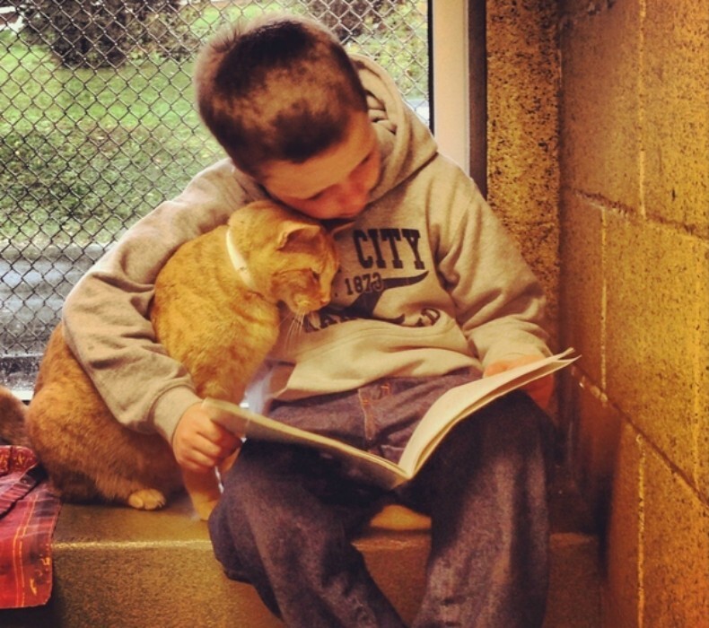 Para incentivar a leitura e a adoção de animais abandonados, o abrigo para gatos Animal Rescue League of Berks County, localizado na Pensilvânia, nos Estados Unidos criou a campanha “Book Buddies”.