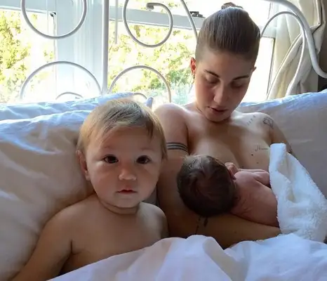 Veja abaixo: a foto da esquerda foi tirada em janeiro de 2014, quando Vanessa estava grávida de seu filho, Jax. A segunda imagem foi feita em janeiro de 2015, quando Melanie estava no final da gestação de Ero, a segunda filha do casal. Jax aparece nessa foto brincando.
