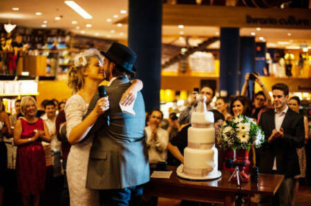 A cerimônia aconteceu no último sábado, 17, na maior loja da rede, localizada no Conjunto Nacional, em São Paulo. Além do cenário, o casamento contou com outro fato inusitado: a lista de presentes era composta só por livros que o casal desejava.