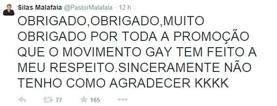 Para abordar o tema, o Catraca Livre destaca algumas citações já publicadas pelo líder religioso em sua conta no twitter. (De acordo com recente pesquisa divulgada pelo site Buzzfeed, Malafaia escreve um tuíte sobre gays a cada dois sobre assuntos religiosos)