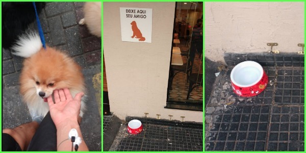 E alguns estabelecimentos já oferecem alguns mimos e facilidades, como vasilha com água, lugar específico pra prender a coleira e até uma casinha de ferro pra não haver perigo do cãozinho fugir ou até ser sequestrado.