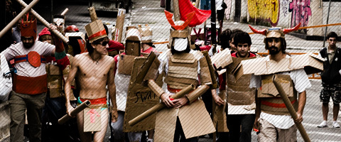 Guerra de Tubos de Papelão acontece no Minhocão