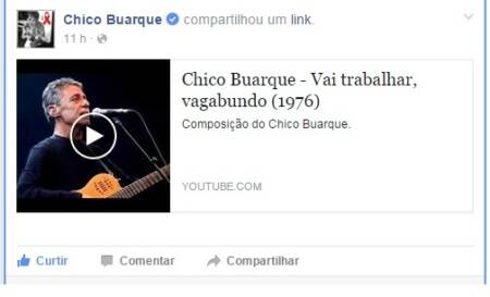 Ironicamente, Chico Buarque se manifesta nas redes sociais e relembra música “Vai trabalhar, vagabundo”
