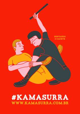 Há quem ame ver policiais batendo em manifestantes. E foi atendendo a essa espécie de fetiche que surgiu o Kamasurra, um movimento que mostra o quão espiritual e elástica pode ser a relação entre a pessoa que bate e a que apanha. Trata-se, claro, de uma manifestação artística que usa o bom humor contra o abuso policial em manifestações de rua. A ideia é que as pessoas espalhem as imagens em lambe-lambes pela cidade e a página da campanha explica o passo a passo para fazer isso.