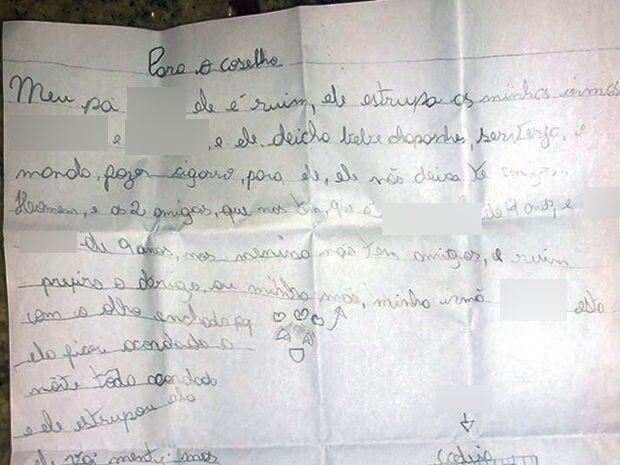 Menina escreve carta e denuncia que pai estupra suas duas irmãs